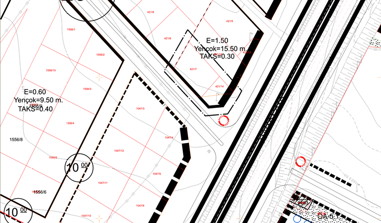 Plan paftasında “E:” veya “emsal/KAKS”, “TAKS:” ve “Hmax / kat adedi” gibi ifadeler dikkatlice okunmalı.
